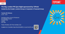 We’re excited to be teaming up with the CIPR Greater London Group and CIPR Corporate & Financial Group for this year’s BIG London Quiz, taking place on: